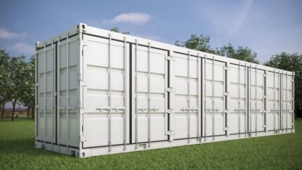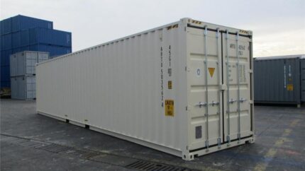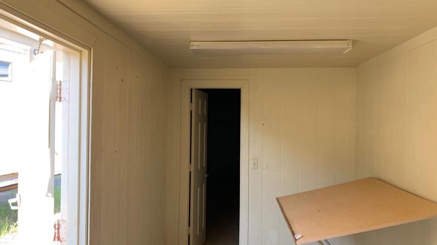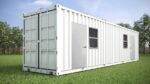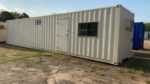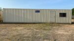 This container office is made from a converted 40 ‘shipping container. The office is paneled and insulated with thru-wall HVAC. This unit features a built-in desk and plan table in the office.